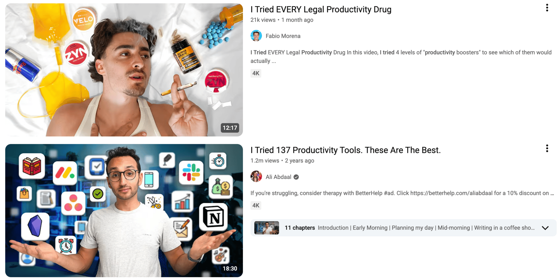(Disclaimer: I haven’t watched these videos, and I'm not criticising these creators—but come on. How many productivity drugs do you need before we can say you have a problem? And trying 137 tools? The thought alone makes my brain hurt.)